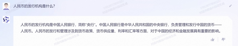 在询问“人民币的发行机构是什么?”后,通义千问虽说出正确答案,但引用的《中国人民银行法》也是错误的,第二十一条规定并非如它所说。